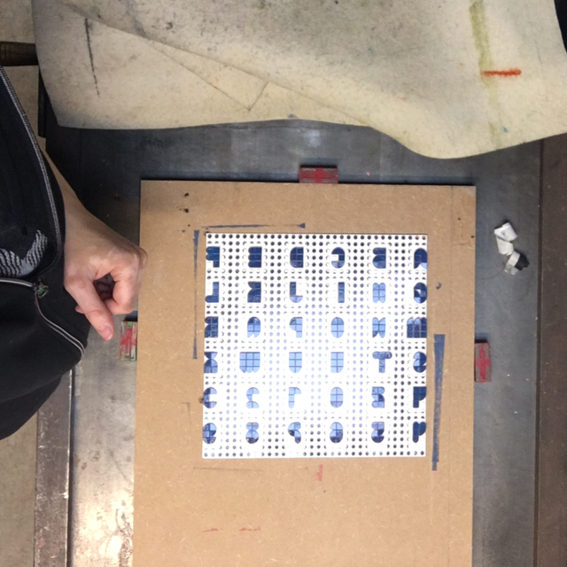 Printed by hand with Lego (dots) pieces.